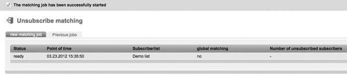 Now, crosseye Marketing starts the matching and, after having finished, it informs you about the number of the deleted subscribers. |