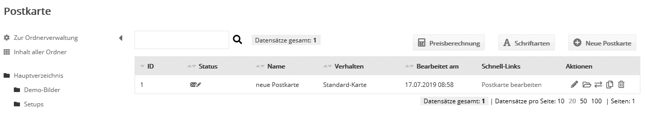 Postkarte erstellenÜber den Button 'Neue Postkarte' erzeugen Sie Ihre individuelle Postkarte.
