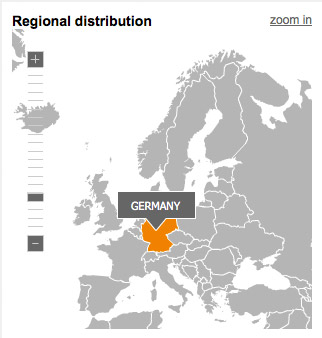 crosseye Marketing generated based on the IP addresses of subscribers an overview of the 'local distribution'. If openings were counted in one country, this will be color coded. By clicking on the country a magnified view appears and cities become visible as points. The larger the dots, the more Openings were counted in this city. Move the cursor over an item, you see the Openings to the location. The data relate to the unique Openings (unique).